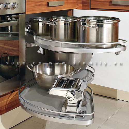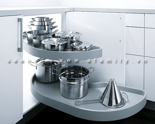 Cụ thể, đối với tình huống này là phát minh ra hệ thống kệ kim loại "đường vòng". Thiết kế đặc biệt của kệ vòng giúp nó có thể tham gia toàn bộ không gian bên trong của các góc thấp hơn và dễ dàng đưa ra nội dung khi cần sử dụng. Một phần được gắn chặt với bề mặt nội thất, phần còn lại di chuyển tự do theo các khớp phù hợp với việc đóng, mở.