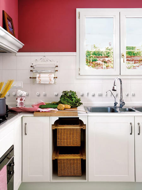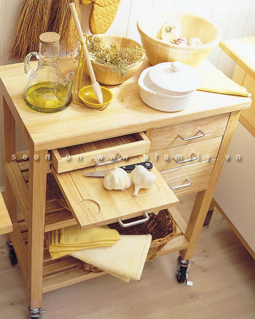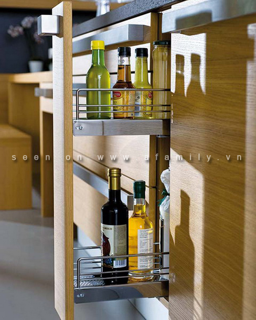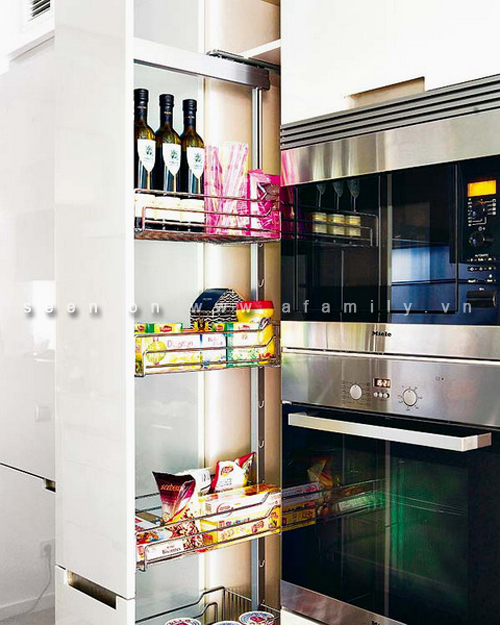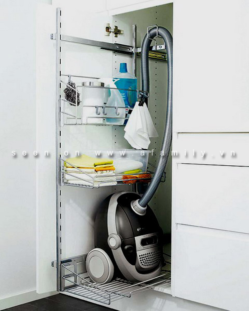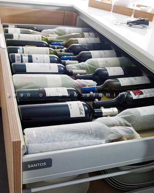 Trên các khay trượt, ngăn kéo hay các tủ bếp di động có thể khoang chứa thích hợp cho các chai rượu vang. Những chiếc giỏ trượt lại có thể là khu vực cho một bàn là nhỏ gọn...