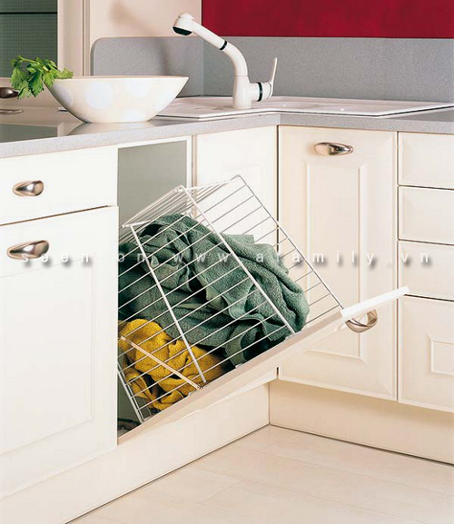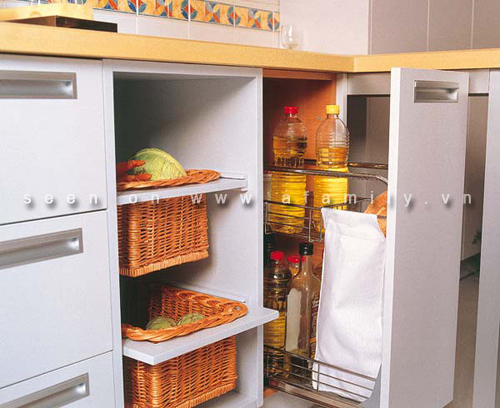 Những chiếc giỏ được đặt trên thanh trượt nên được gọi là giỏ trượt. Lưu trữ vật dụng, đặc biệt là thực phẩm theo cách thức này có nhiều ích lợi vì nó rất thông thoáng nên bảo quản thực phẩm (rau, bánh mỳ) tốt hơn. Hơn nữa từng giỏ riêng biệt giúp bạn dễ dàng lấy hoặc mang theo một cách tiện lợi, nhanh chóng. Có thể bố trí nó trong các tủ thấp tiện dụng và dễ quan sát.