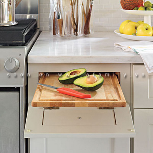 Những chiếc thớt trượt được sửa đổi, bổ sung từ nhà bếp truyền thống, ban đầu là để lưu trữ gọn gàng, hợp lý, nhưng sau đó nó được cải tiến mở rộng để cung cấp chức năng cắt, thái tại chỗ thuận tiện. Những chiếc thớt này thường được đặt trên một khay hoặc giá trượt rất linh hoạt, làm bằng nhựa hoặc gỗ và có thể lấy ra để làm sạch dễ dàng.