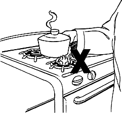 Nếu được, bạn nên cấm trẻ bước chân vào khu vực này. Làm một chiếc rào có cổng ngăn cách. Còn nếu không có người trông, bạn phải cho trẻ nhỏ vào cũi hay ghế an toàn đặt bên cạnh. Với lũ trẻ lớn hơn, nên vẽ một “vùng cấm” quanh bếp nấu và nghiêm khắc trừng phạt khi chúng bước chân vào.