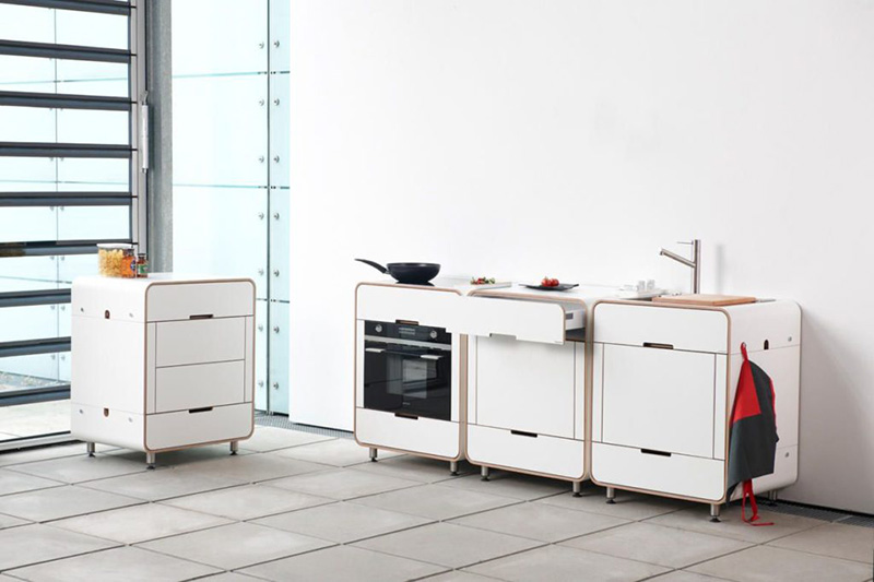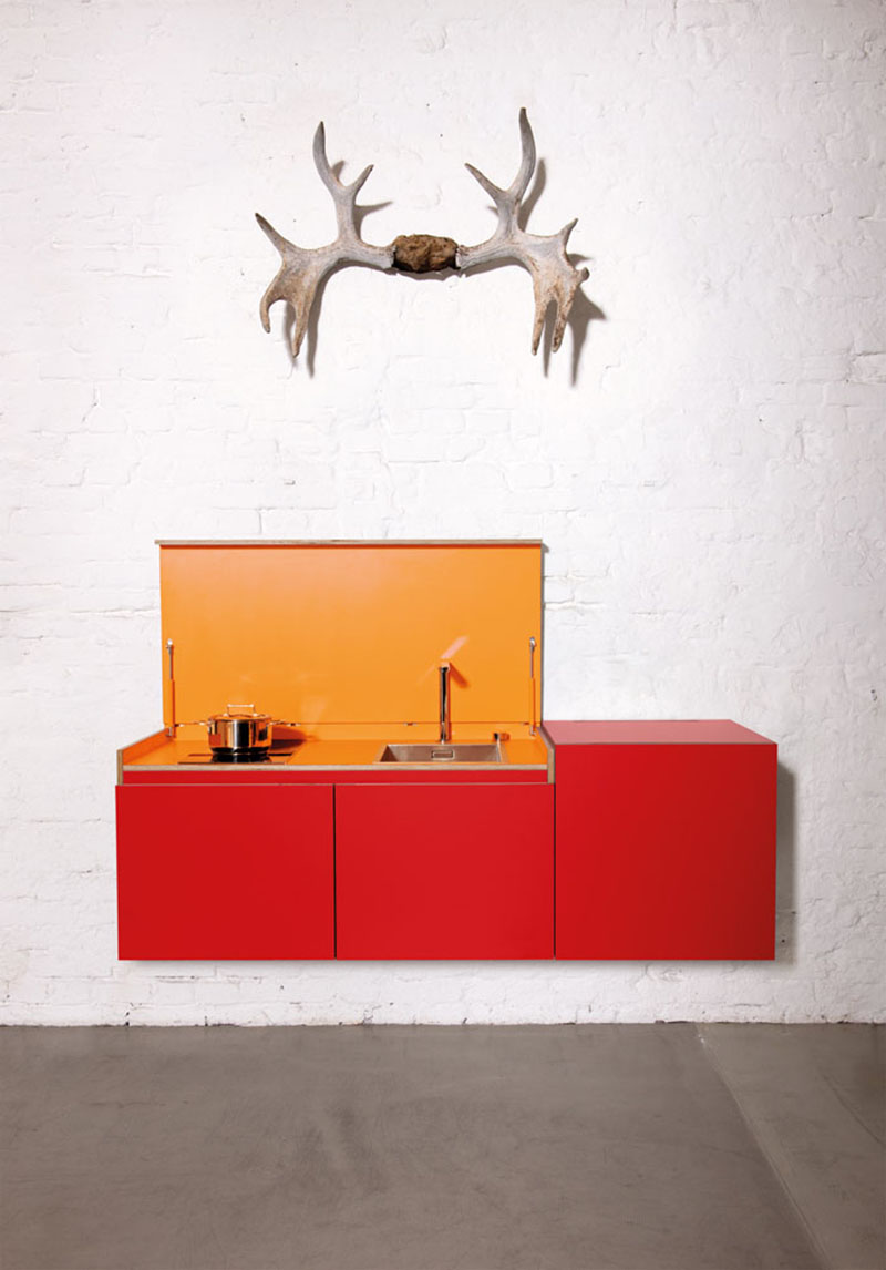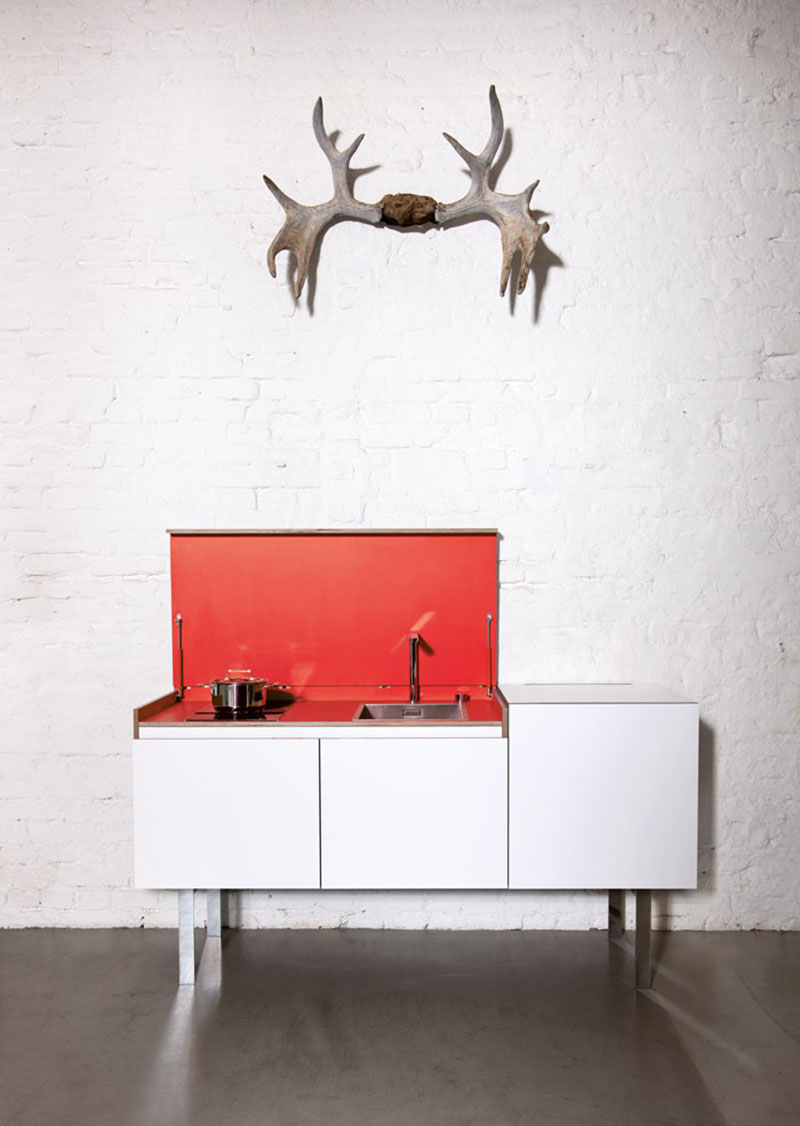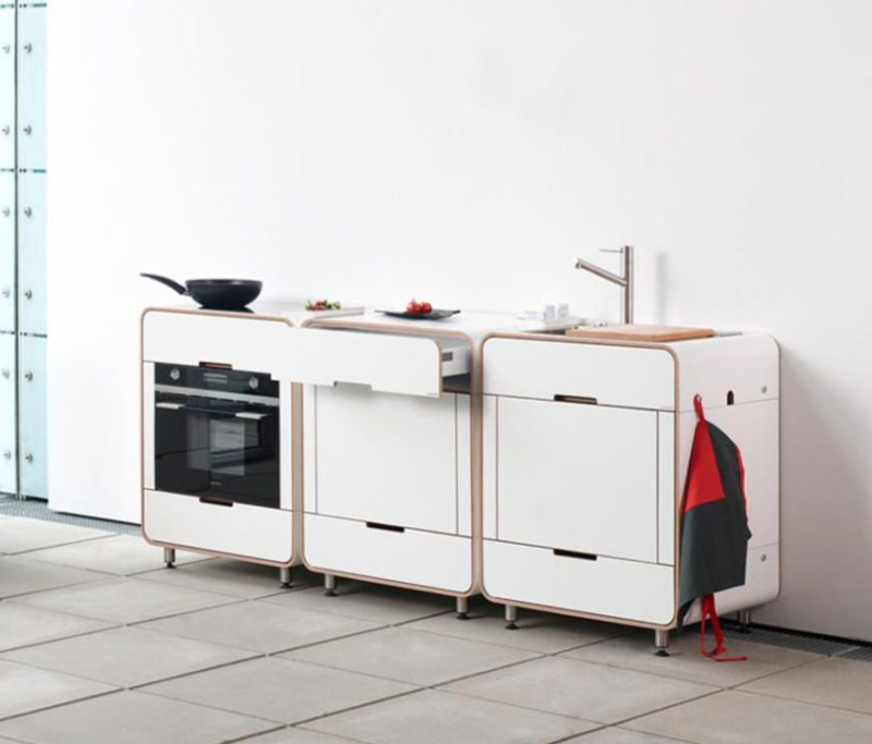 Thiết kế này cho phép bạn ẩn bếp đi sau khi sử dụng và đưa nó vào không gian phòng khách ấm cúng. Thiết kế gồm 3 mô-đun có thể hoán đổi cho nhau, khi ghép lại với nhau chúng giống như một chiếc tủ để bên tường, thiết kế này có đến 15 màu sắc khác nhau và nội thất có thể tùy chỉnh.