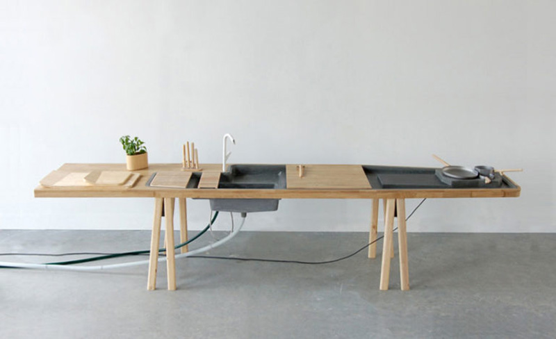 Những gì bạn thấy ở đây là phòng bếp được Sebastien Cluzel thiết kế. Thiết kế này có thể thay thế đảo bếp truyền thống hoặc thậm chí là tủ bếp thông thường. Thiết kế đơn giản và tập trung vào vẻ đẹp thô và hữu cơ với những nguyên liệu được sử dụng từ gỗ và đá núi lửa thay thế bếp lò truyền thống.