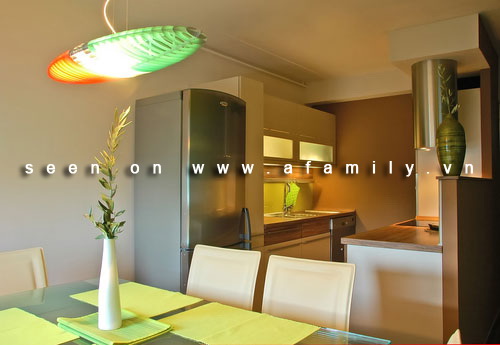 Ba bức ảnh trên chính là một căn bếp được chụp ở nhiều góc độ khác nhau để làm nổi bật lên đặc tính của nó. Ở căn bếp này, điều mà bạn cần lưu tâm chính là những ánh sáng rất mạnh được phát ra có chủ ý của những vật dụng cố định. Chúng làm cho ta có cảm giác kích thước căn bếp như được nới rộng ra và không còn khoảng cách giữa bếp và bàn ăn nữa.
