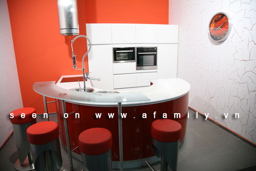 Những thiết kế cho nhà bếp đương đại giờ đã khác rất nhiều so với kiểu truyền thống. Bắt đầu từ màu sắc, tường trắng sẽ làm căn bếp như rộng ra, những gam màu đỏ nóng bỏng được tiết chế để tạo thành điểm nhấn cho không gian. Nhìn vào bức hình trên, bạn có cảm giác chủ nhân nó dường như đang biến căn bếp của mình thành một quầy bar nhỏ nhắn nhưng đầy đủ không?