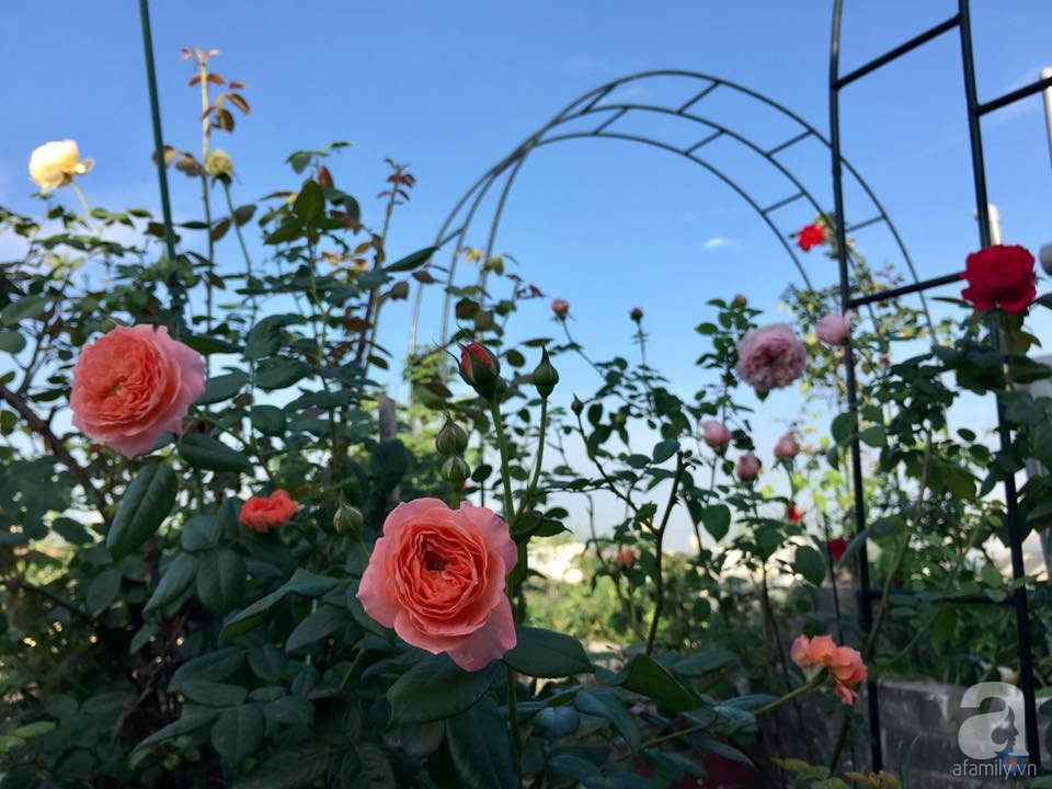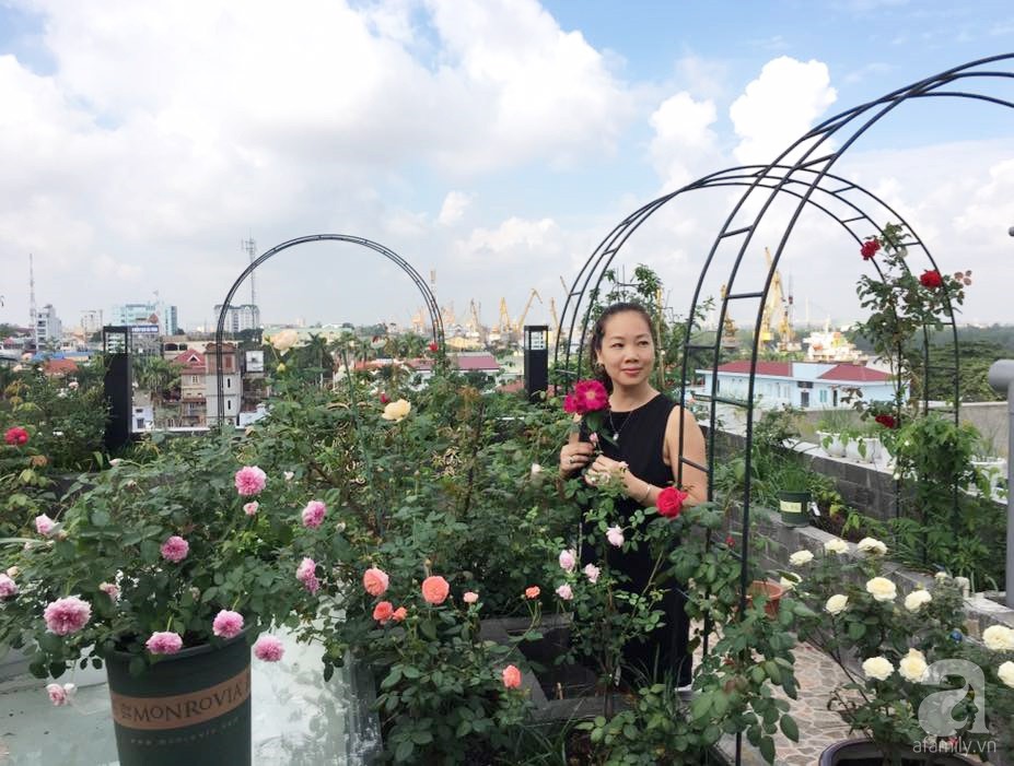 Cận cảnh khu vườn hoa hồng đẹp đến ngẩn ngơ trên sân thượng của cô gái trẻ.