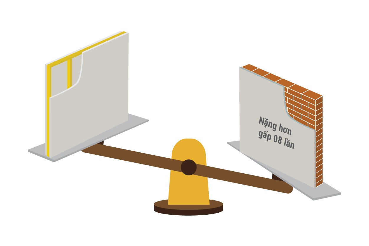 Thạch cao nhẹ bằng 1/8 so với tường gạch nung độ dày 200mm giúp giảm tải trọng đáng kể cho công trình. Một nghiên cứu từ tập đoàn Saint-Gobain Việt Nam cùng với công ty TNHH Tư vấn Xây dựng Meinhart năm 2012 kết luận, khi sử dụng tường thạch cao thay thế cho tường gạch nung ngay từ đầu có thể giảm đến 7% tổng chi phí xây dựng (*). Cũng theo KTS. Nguyễn Văn Châu “Những công trình sử dụng tường ngăn thạch cao cũng sẽ dễ dàng cơi nới hoặc cải tạo thêm không gian mới sau này. Ngược lại nếu là tường gạch truyền thống khi tháo dỡ để lại một vệt dài ngay vị trí tường cũ rất khó chịu và khó xử lý dưới nền hơn”.