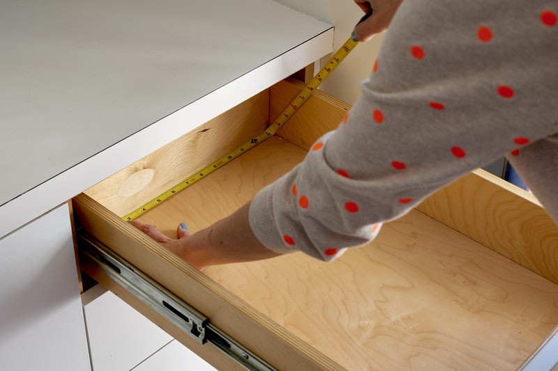2. Đo bên trong ngăn kéo: Đo chiều rộng và chiều dài ngăn kéo của bạn. Bạn nên trừ đi khoảng 3cm cho mỗi phép đo để có được ngăn kéo chia chéo chuẩn xác, xinh xắn hơn. Đừng quên đo 2 lần để có số đo chính xác.