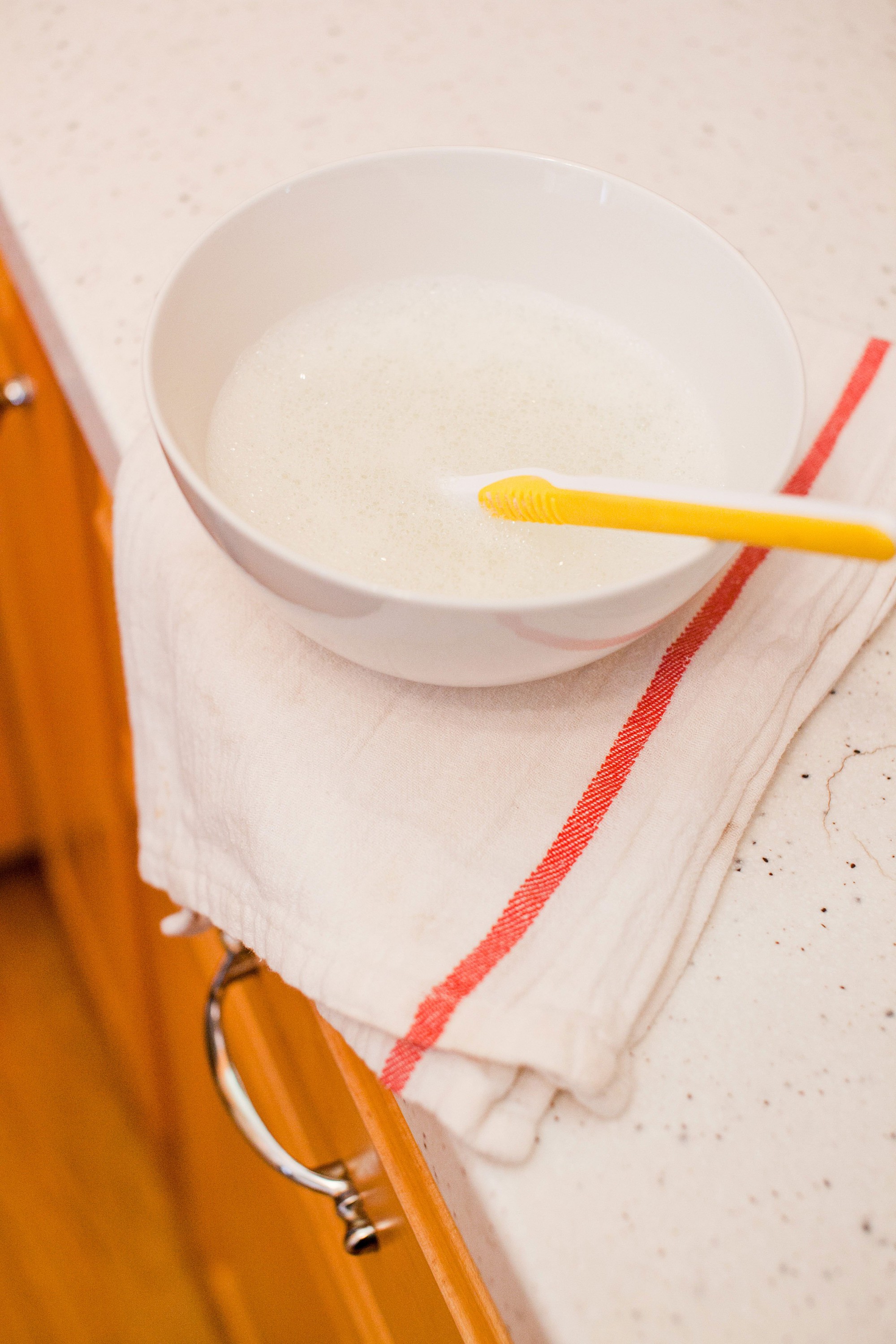 4. Cọ rửa các góc: Chà xát vào các góc của tủ bếp gỗ.