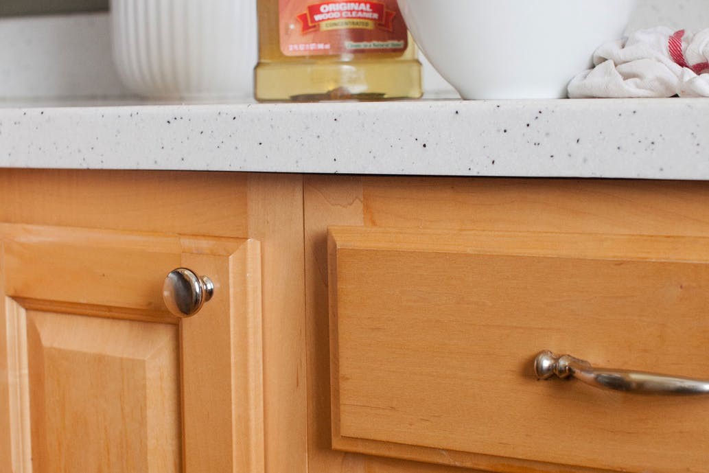 Tủ bếp gỗ là nơi chứa nhiều đồ dùng khác nhau, từ các loại gia vị đến dầu mỡ, có thể bám lại nhiều vết bẩn cứng đầu.